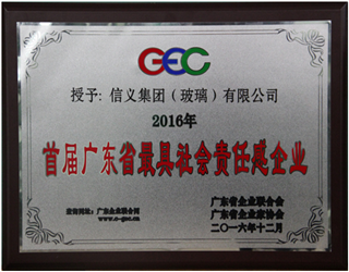 信義集團(tuán)(玻璃)有限公司榮獲2016“首屆廣東省最具社會責(zé)任感企業(yè)”稱號
